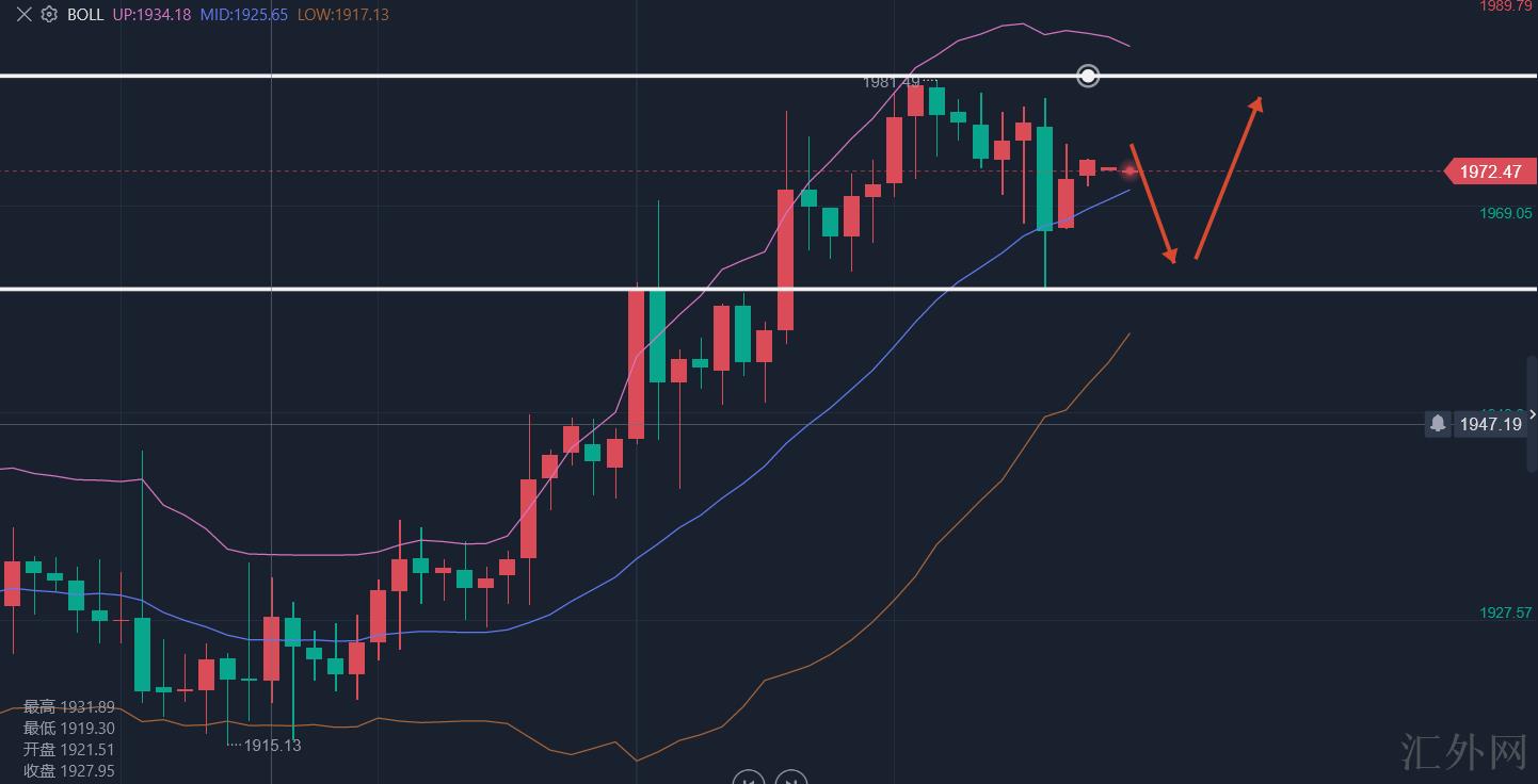 盘中可以目睹,黄金从1890回弹以来,盘中历经的多类运行结构:V型反转、三角震荡收敛、区间震荡横盘、单边上升,最终的结果均为买方,当前从技术分析来说,结合日K线以及小时图结构,包含日间黄金的运行节奏,短线临时依旧参考其技术行情,看调动消化的预计,夜里以下先注意1960争夺,从技术上也依旧有很大约率会跌穿的,以下则着重注意1953-50、1945-40区域支撑试探。综上所述,黄金下周交易参考上道氏论金推荐回踩低多为主,回弹高空为辅,上方着重注意1985-1990一线压力,以下短时间着重注意1960-1955一线支撑。