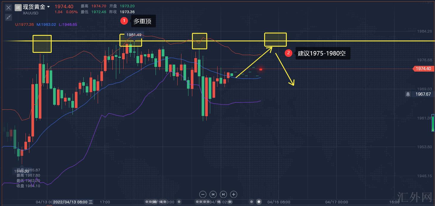 黄金多重顶,下周金银行情分析。在线指导。多空单解τ