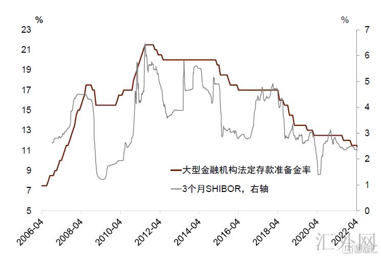 中央银行降准有两个选择,一是置换部分MLF,一是不置换MLF、直接放出流动性。但在这次降准后面,存款准备金率已经下滑到8.1%。中央银行在2020年提议过,“从我国有记录以来以及低收入国家情形看,6%的存款准备金率是比较低的水准”[1],同期,中央银行已经终止对存款准备金率下滑到5%的机构持续向下调整准备金率。此外,2021年MLF到期有5.15万亿元(下半年月均7000亿元),2022年到期的MLF共4.55万亿元(月均380亿元),同比降低6000亿元,亦在一定程度上制约了中央银行降准(置换MLF)的区域。