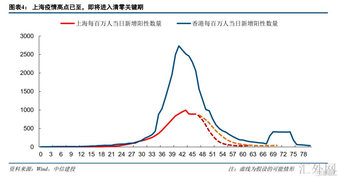 3月末以来,上海流行病和封控对于经济造成了显著扰动,我们分析接下去的两周将进入“清零核心期”,首要分析根据是:上海新添阳性数量已经触碰高位开始走平,参考香港等过往奥密克戎流行病案例,马上进入下探阶段。同期,上海抗疫事态马上面临改观,4月15号上海本土患者出院969例、消除集体隔离医学观察19800例,单日出院出舱人数超两万例,已经靠近诚然新添阳性数量。我们预期下周开始出院出舱人数+新建方舱床位数量将胜过新添阳性数量,到时“四应四尽”、日清日结将有希望达到,为社会面清零打下基础。