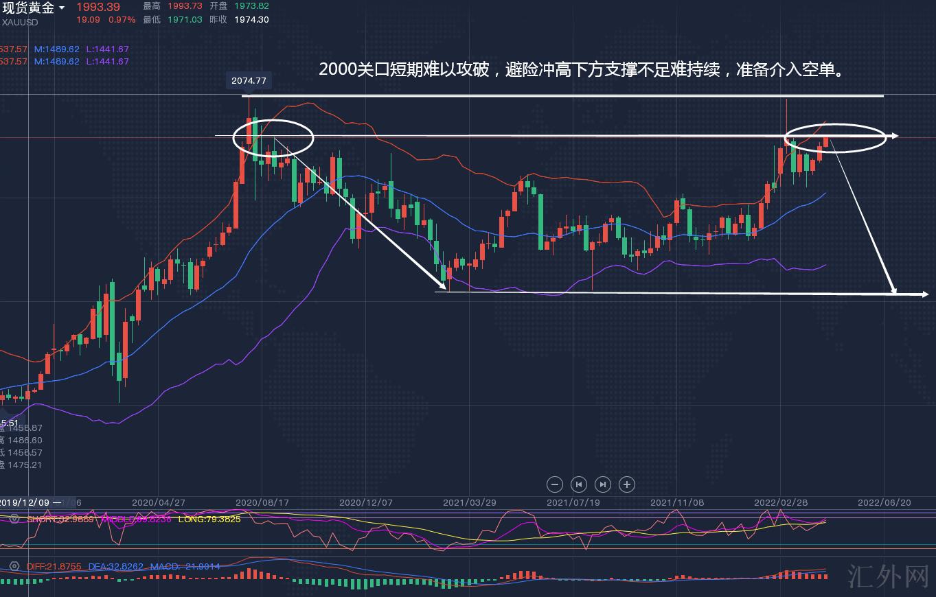 ①、黄金今日没有回头一路上升到达高位1993区域,依旧地缘避险占领市场氛围,短时间来说强劲,但是埋下的隐患却很多,首先各大报告表明就业不错,零售上涨,显示经济恢复较为积极,这还将让5月马上来临加息缩表意向愈加浓厚,同期来打压黄金价格,所以暂时的避险无厘头冲顶在大趋势卖方之下是否连续仍有待观察,仍有一点,只要市场消息显现战局转好那么大家空单可安心进。