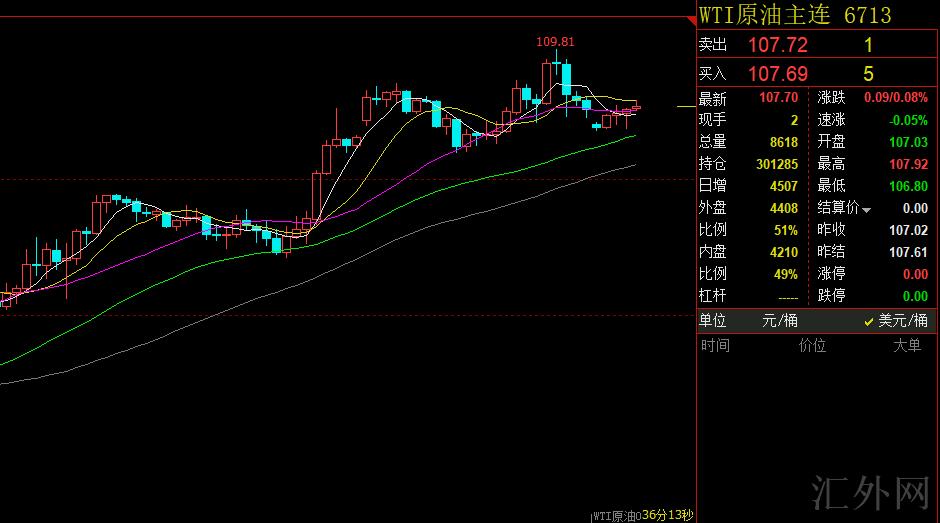 原油在欧盘时段开始上涨,收盘稍有回调,美原油最多立稳109美元每桶,最终收盘上涨0.98%,报得107.53美元每桶;brent原油收盘上涨0.58%,报得111.71美元每桶;美国天然气期货大涨差不多10%,立稳8美元/百万英热,连续刷新2008年迄今高峰。