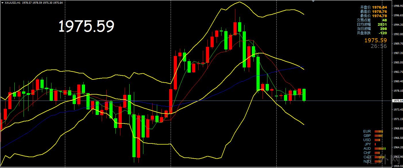 上方推荐先注意1990左右压力,这里是收盘下挫后回弹的两个高位位置;同期1982/1983左右也是当前四小时均线压力位置;若行情持续上升,推荐更深一步注意1998/2001左右压力,1998左右是昨天的高位,2001是当前上通道压力位置,也是黄金从2070下挫1890的黄金分割0.618名置;若行情持续强劲上升,推荐更深一步注意2010、2020左右压力。