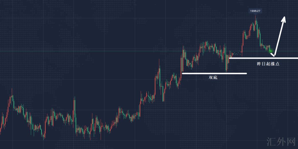 而强劲中,需求注意几个点:越强的行情,覆盖性越高,换句话来说,二次吞噬顶部上去,就是一个极强局势。上涨中回撤,分界线和双底位置很重要,价格一般可以摸底回涨,但不能转跌穿底。所以今日的核心,就是起涨位和分界线。