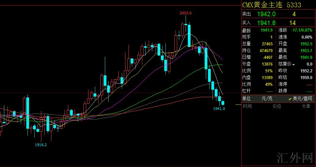 昨日,美元指数两年多来第一次上升击穿101,十年期美债收益率刷新2.93%,为2018年12月迄今最高,受乐观的财报提升,美三大股指刷新逾一个月最好单日表现。美元走高和美债收益率升高令金价遇阻,价格最多痛跌1.75%,近期刷新1944左右。