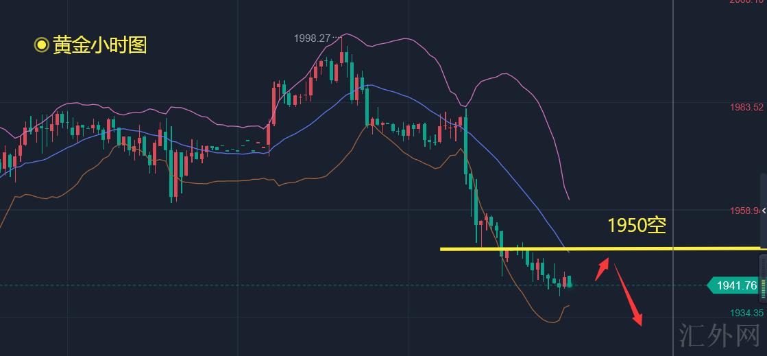 从小时图中来说,黄金瀑布式下单,破新低导致时间困难,1950以下大胆买跌,今日计划看1930左右,跌穿则是1900的节奏,黄金大程度的回撤,顺势持续买跌,连阴跌穿1960支撑,卖方态势很强,不能逆势干多,欧盘若给回弹中轨的可能,油门踩见底空进场!
