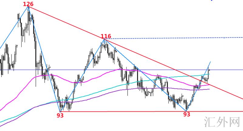 最近受地缘局势和提供层面影响,曾最多攀升126美元左右,为2008年末以来最高。最近原油多次试探93左右支撑都未能有效跌穿,加上对俄的制裁或许会产生有史以来最严重的石油提供打击之一,而且不或许取代这些产能,并示意将不再增产。致使原油依托93支撑面临回弹回涨,重返100关口之上关,而且125—116连接的下探趋势线也被击穿。当前原油冲顶109名置遇阻显现回调,又一次跌至100关口,代表高点阻力也严重,上涨趋势的保持性被打断。然而以下93名置双底也存在强劲支撑,当下就着重注意100关口这个分界线位置,看能不能得以支撑了。操作上可以先在100关口博个回弹,若跌至98名置务必多,上方105—106可以空。
