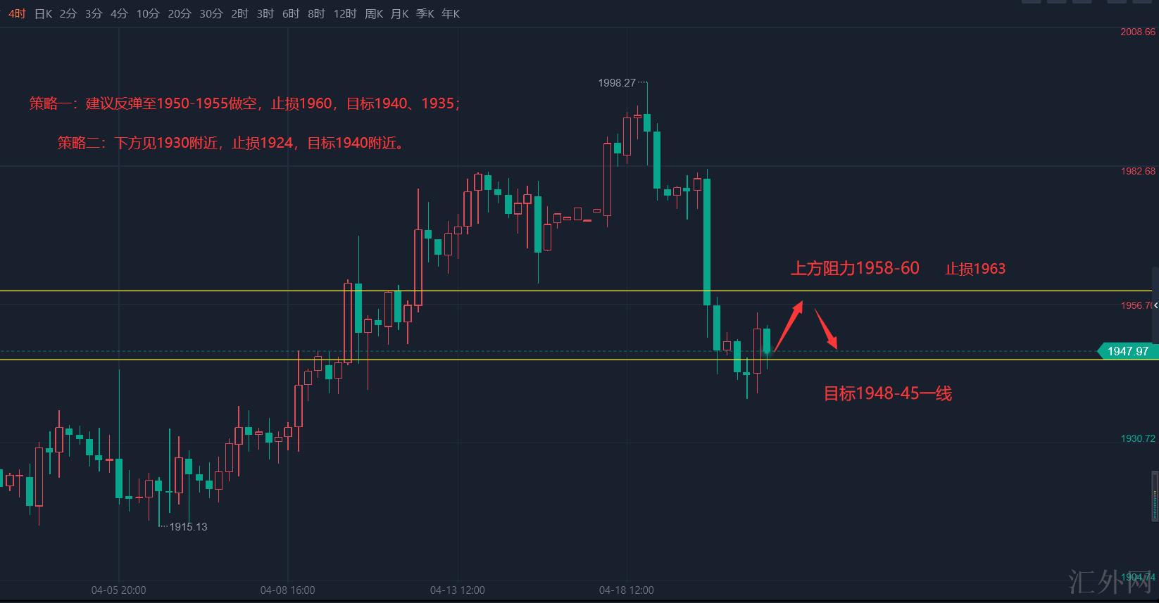 黄金早间行情分析:上方回弹1958-60一线轻仓短空,止损1963,计划1948-45一线