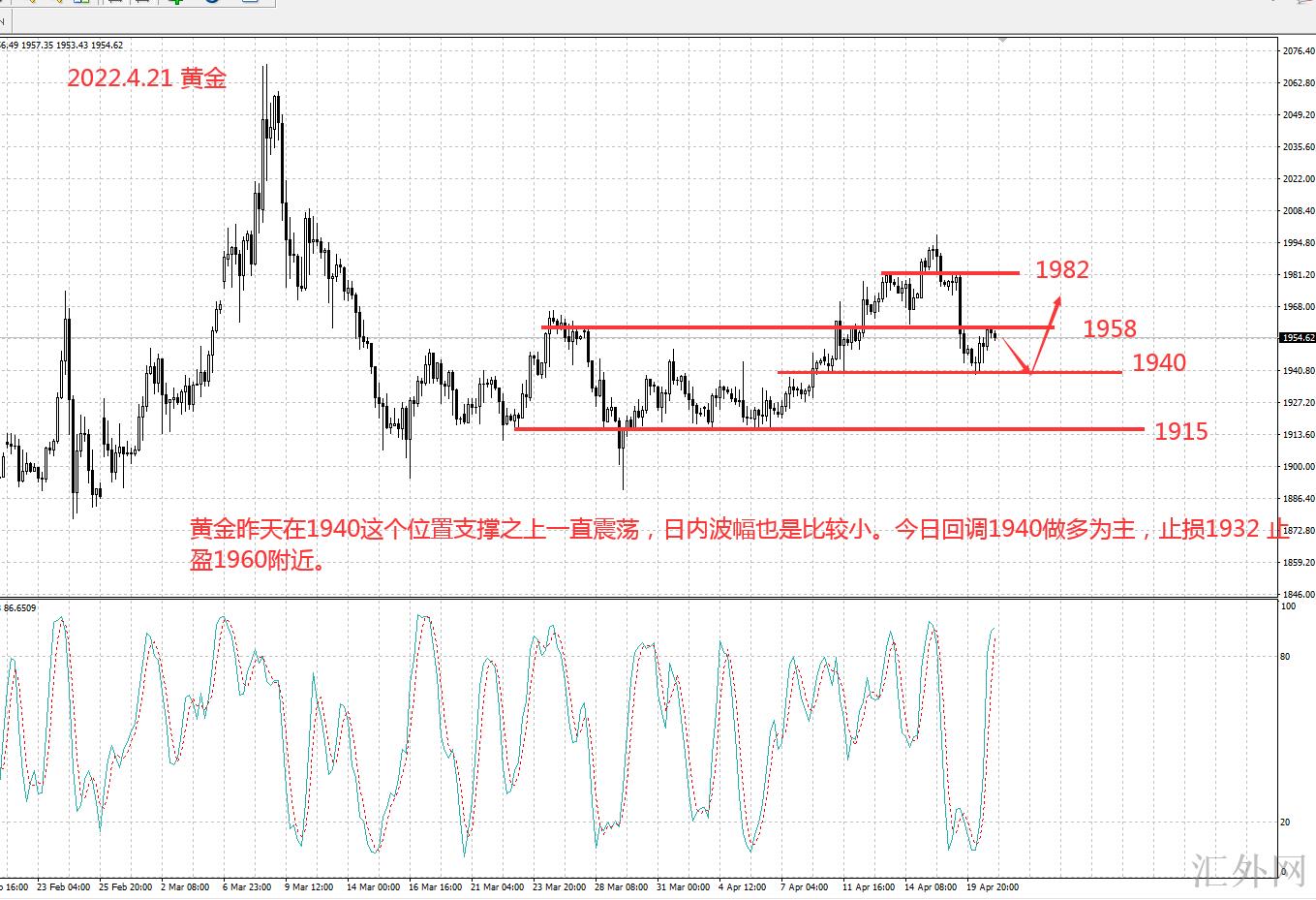 黄金昨天一直是震荡日间的波幅也不大,在1940一带支撑几次未破,表明这个位置的支持依旧比较强,上方压力在1958一带。今日交易参考多空都可以上,高抛低吸。亚盘1955-58买跌 止损1965 止盈1940,止盈后买涨 止损1932 止盈1960左右。