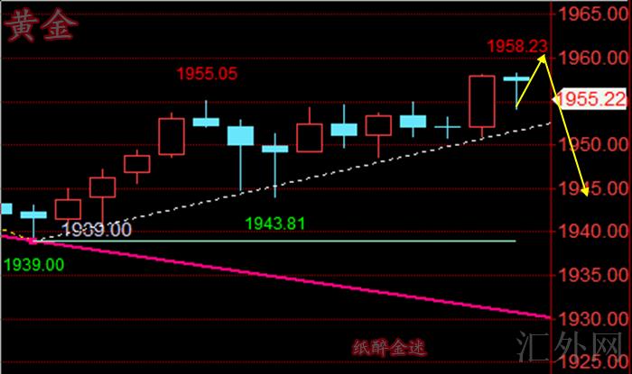 黄金交易参考:黄金今日1958左右就可以空,止损1965,计划看以下1943,跌穿看1937和1931支撑点;以下1931左右接多看一次回弹,计划点位1944左右。