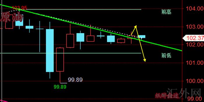 WTI原油市场昨日开盘在106.983的位置后行情先推涨给出108.307的位置后行情迅速回调,日K线最低给到了101.32的位置后行情整理,日K线最终收线在了102.264的位置后行情以一根上影线长于下影线的大阴线收线,而如此的形态收尾后,今日的行情回踩空,着重关注以下100的击穿情形,上方阻力105.5,原油短线交易参考上老孟读金推荐:回弹买跌为主,105空止损105.6以下计划看101.3,跌穿看100.初见100.2多,止损0.4,计划102-103.8,其它点位待定,依据盘面改变实时提示。