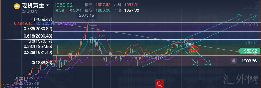 昨日星期三,黄金亚盘先是保持了凌晨的下挫行情,反复破低下探1939区域,欧盘摸底回涨回弹上升击穿日间高位,美盘回踩确定支撑后持续升高上升,收盘增速冲刺上升到1958上方区域。
