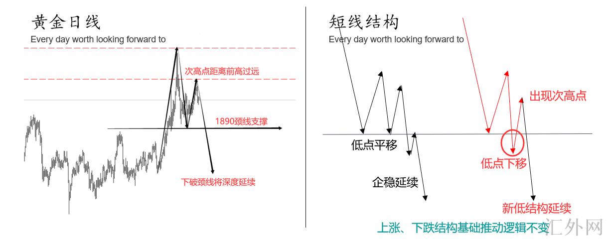 昨天我们在文中叙述了有关黄金日K线级别双顶下挫的基础逻辑,并在直播阶段加深了此看法,然而昨晚黄金价格抵达1950美元所达到的保持下挫,仅抵达1938美元便形成双底回弹,晚盘时段黄金价格再次收回1950美元关键点位,这打破了结构助推的基础逻辑。