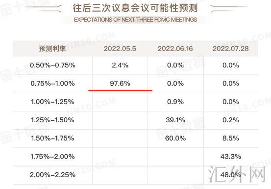 然而昨晚美联储主席鲍威尔的发言却举足轻重,他否认了5月利率会议中直接加息50个基点,而是对加息50个基点执行探讨,即使这样,在高通货膨胀的局势下,市场对美联储在5月加息50个基点几率仍有所向上调整。但鲍威尔不够强硬的发言,令市场情绪达到了减缩。