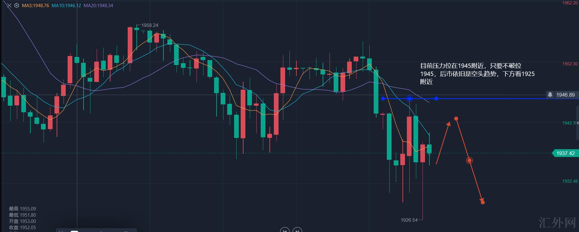 操作策略:黄金1940-1945空,止损1950,计划1930-25