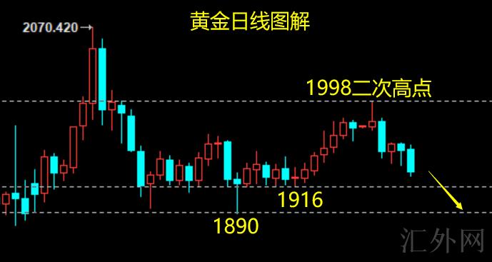 黄金,年初价格自俄乌矛盾避险冲顶到2070,并在2075-2070构筑平行顶部形态抛压到1890;上周又一次拉高到1890-2070连线61.8%回弹点2000关键点位回调,周尾下探1927;日线图接连收阴,K线组合呈卖方排列不错;伴随矛盾靠近尾声,同期美联储加息有好处空头,预计后市价格将令保持走跌到1900关键点位及1890低点;