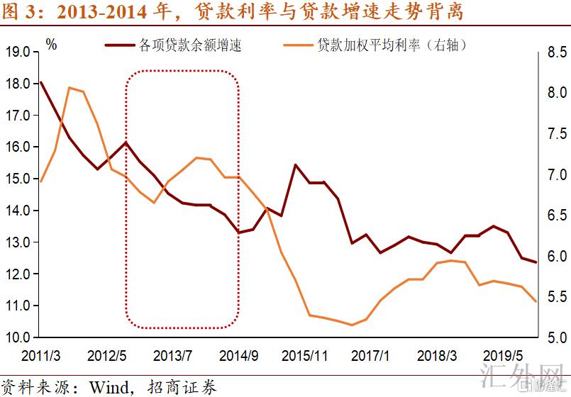中国经济潜在增速下台阶,内生需求不足致使信贷增速下探。2014年,中国经济步入新常态,经济增速渐渐从高速上涨倒向中高速上涨。当年一季度的《货币政策实施数据》开辟专栏,第一次专题探讨了中国经济潜在增速困难。专栏表示,“受劳活力供给趋紧、经济发展方式转变等影响,潜在上涨速度有机会会呈现阶段性减缓态势”。经济潜在增速的下滑代表着贷款需求的趋势性降低,现代货币政策框架将其内化为货币政策的中介计划(即:维持社融增速与M2增速同名义经济增速差不多匹配),所以当时信贷增速下跌与经济潜在增速“下台阶”紧密有关。