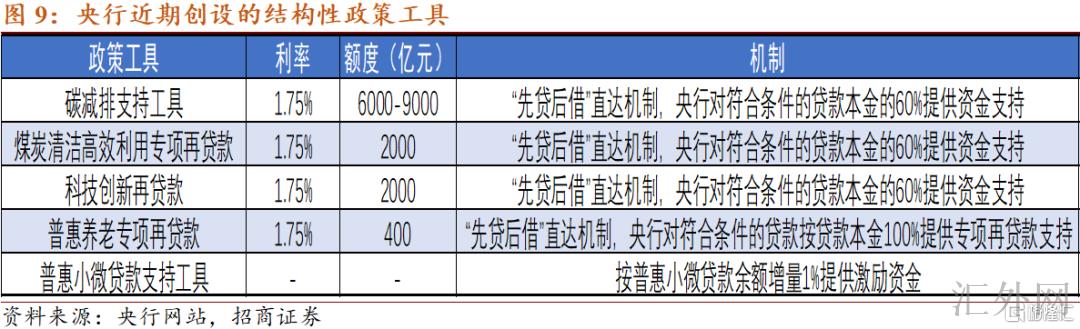 乐观创新结构性政策工具,通过“压降成本+分担风险”等方式激励银行加大信贷投放。在运用现有政策工具激发贷款需求的基础上,中央银行瞄准着重行业与薄弱环节的信贷增量,加速结构性政策工具的创设脚步,有效减弱专项贷款利率与风险约束。譬如:去年四季度,为响应“双碳”战略,中央银行创设煤炭清洁高效利用专项再贷款与碳减排支持工具,加大对新能源产业信贷支持强度;年初,将“普惠小微企业贷款缓期支持工具”转换为“普惠小微贷款支持工具”,激励银行扩大普惠小微贷款增量;最近经国务院需求,加速创设科技创新再贷款和普惠养老再贷款,引导银行加大对这些行业的信贷投放。上述结构性政策工具备有两个特点:一是通过优惠利率,显著减弱银行资金成本;二是实施“信贷报销”,分担了这类贷款违约的风险成本,提高银行风险偏好。“中央银行23条”公布会表露,结构性政策工具的运用,预期将动员贷款投放多增1万亿,起到四两拨千斤的作用。