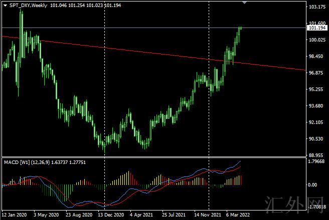 美指在上星期五最高刷新101.34,创下去年3月24号迄今高点。不论日K线依旧周线周期,美指从去年5月下旬开始的这段上升趋势行情,形态依然维持完好,这周较大约率更深一步试探102关键点位。而102到103区域存在较多强压力,美指存在大幅回踩的几率,所以说这周后半时段,美元多单推荐审慎持有。日间则注意101.34是否被迅速击穿,若不能往上击穿此位置,美指则有日间转跌风险。以下重要支撑在101关键点位,更小支撑则在100.60左右。