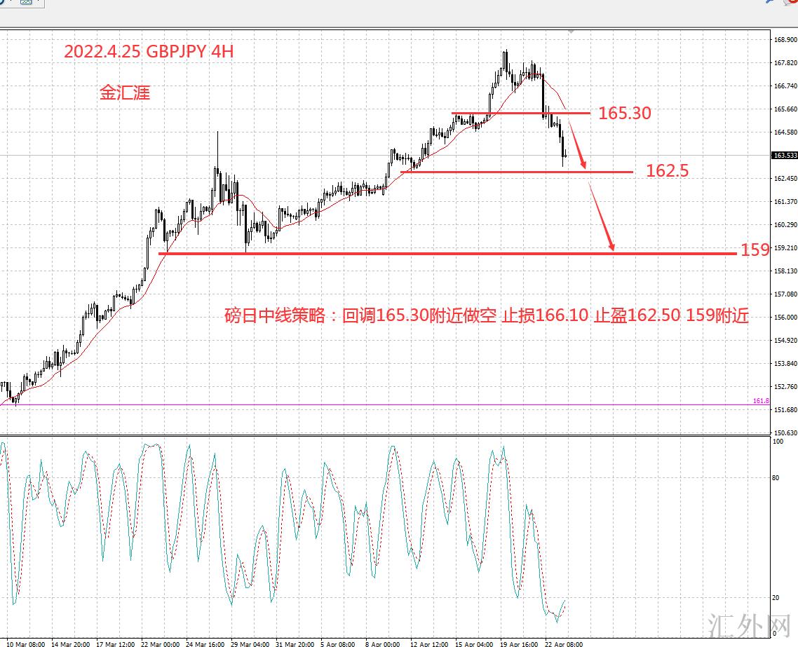 磅日上周收线来说收了一根长长的上引线锤子星,日K线也是显现黄昏之星连跌两天大阴线,这周思路高空为主,很有机会显现反转信号。中线布局空单:磅日回踩165.30左右买跌 止损166.10 止盈162.50 159左右。(以上属于个人看法,盈亏自负,投资有风险,入市需审慎)。