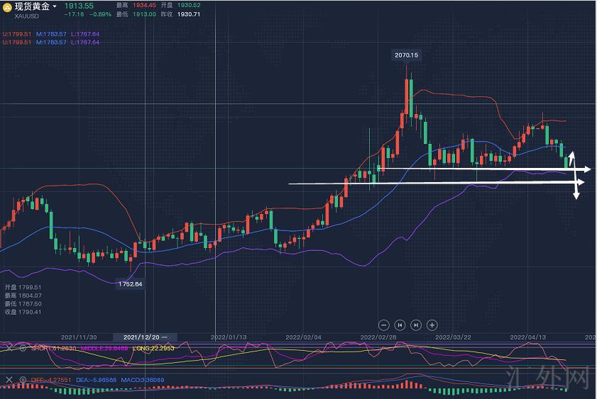 ②、再谈盘面:黄金价格至冲顶回调后面整理盘整皆是在1915-1935之间,今日直接朝下击穿,弱势无疑,而且冲顶2000关键点位未破日K线收倒垂线后就奠定了右肩抑制成立,同期呈阶梯下探模式,大趋势上接下去恐会要迈入1800的时代了,就看1900-1890支撑是否做短暂停留。那么短线上可以目睹1910-08一带属于4小时密集支撑带,下挫未破在此震荡,故欧元兑美元盘大约率在此位持稳回弹一次后再跌。
