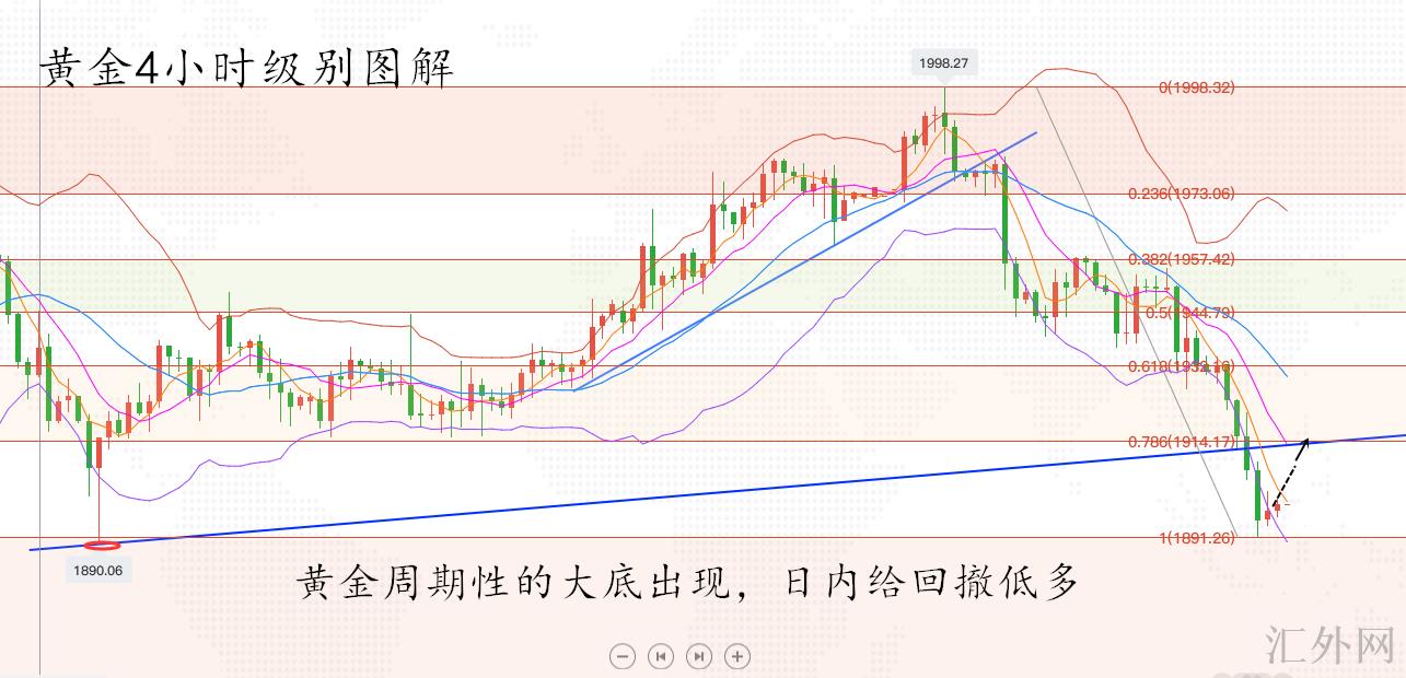 白天盘面行情比较小,午夜提及过黄金周期性的大底1890纹丝未动,这就致使或许近段黄金任然会走震荡,同期月线级别的买方放量也马上开始。黄金整个行情倾向于震荡上升,今日摸一次1890几率并没有太高,但回撤后面就要解决低多。