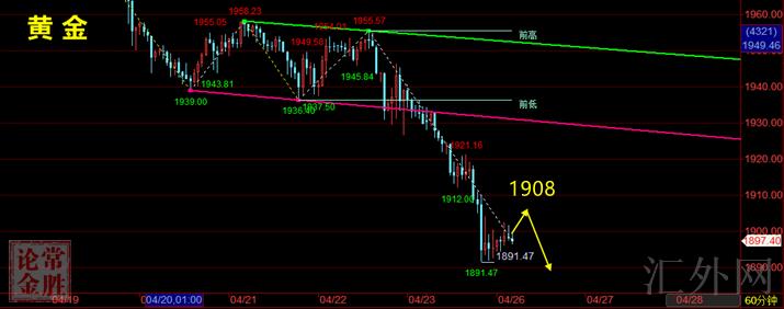 黄金策略:回弹1908空,止损6美金,计划看1895