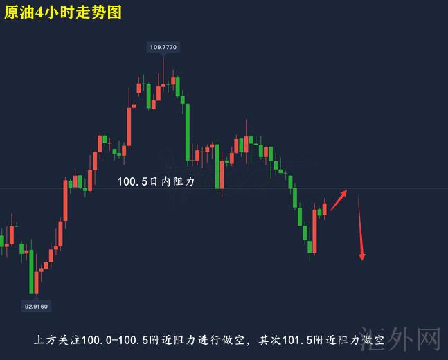 原油技术分析来分析,日K线上,隔日原油持续遇阻于MA5日移动均线展开下探,盘中跌朝下轨左右回涨,报得带下影线的中阴,日K线上,今日行情开盘适当回涨,同样抑制较强,维持看跌;4小时上,隔日原油走震荡下探,持续刺破下缘创下低,夜里适当回涨,并刺破均线,目前布林带处在开口期,MA均线在迈出死叉后MA5日移动均线拐头往上,KDJ随机指标三线并拢往上,马上到达超买,MACD指标绿色量能柱适当缩量,快慢线平行向前,综合来说,日间原油即使回涨,但均线抑制较强,日间推荐维持买跌,上方注意100.0-100.5左右压力,其次101.5左右压力买跌。