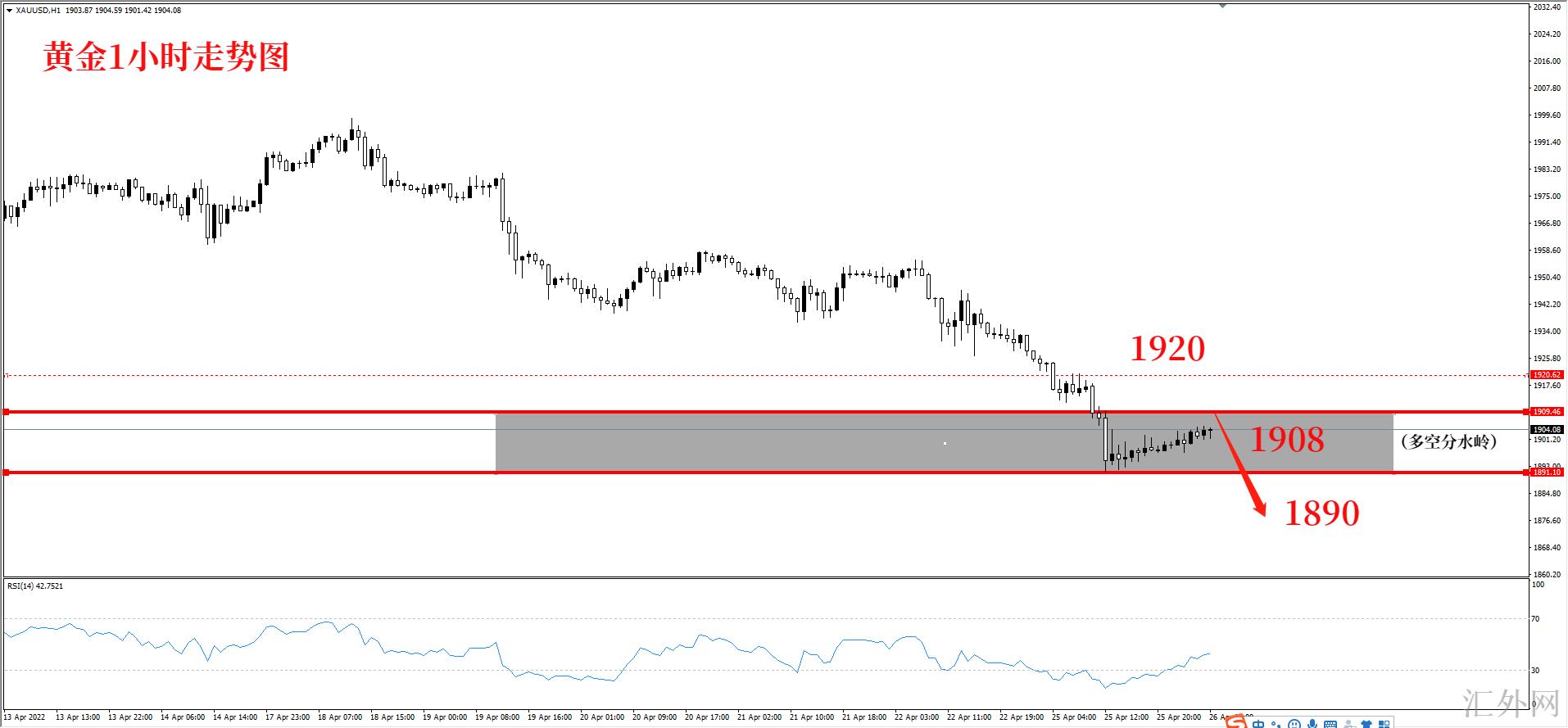 赵元祺:4.26 黄金行情分析:黄金大阴杀跌 千九上方维持高空