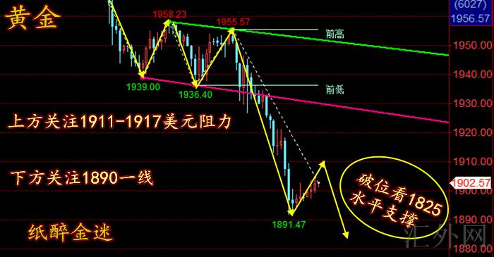 四小时级别向上瞧,经历了在此之前的冲顶证实压力,又一次的遇阻下探,三次刷新1890的支持作用,在此之前受于均线指标未拐头,两次下探后承受支撑迈出强回弹。摸高后再回调靠近。当前已经失守了60日移动均线,在此之前在中期均线之上迈出回弹是情理当中,而昨日失守中期均线再靠近低位,这周有朝下击穿的机会。综上所述张绅尧归纳:黄金连阴下挫后日K线收录中阴线,趋势看空,后市回弹不加强,大约率显现一次接连,今日操作上斟酌回弹买跌为主,低多为辅。