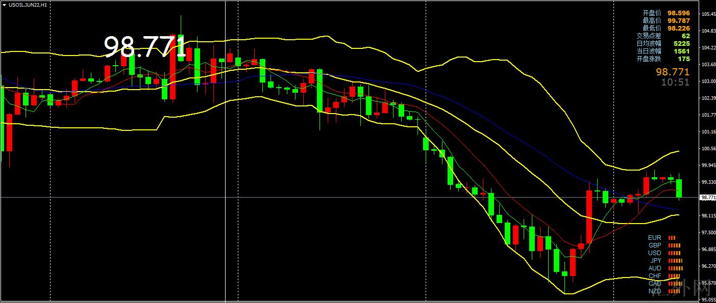 昨日原油开盘就回调下探,在美盘开盘后直接回调下探95.3左右,在回弹上探99.4左右,收盘98.6左右,日K线震荡下挫连阴局势,KDJ死叉运行超卖区域,MACD也初始死叉运行在零轴以下,原油价格失守所有短时间均线和100整数关键点位,短线倾向卖方,或许会更深一步跌到布林线下个93.71左右。上周最低位99.88已经转化为初始压力,50日移动均线压力在100.5左右,布林线中轨压力在101.5左右,需求收回该位置,才可逆转短线看跌信号。综上所述张绅尧归纳:原油接连下挫,完成了卖方保持ABC结构,当前关注原油价格回弹的保持性,今日操作上斟酌回弹买跌为主,低多为辅,上方压力位注意100.7-101.5美元,以下注意95.2美元。