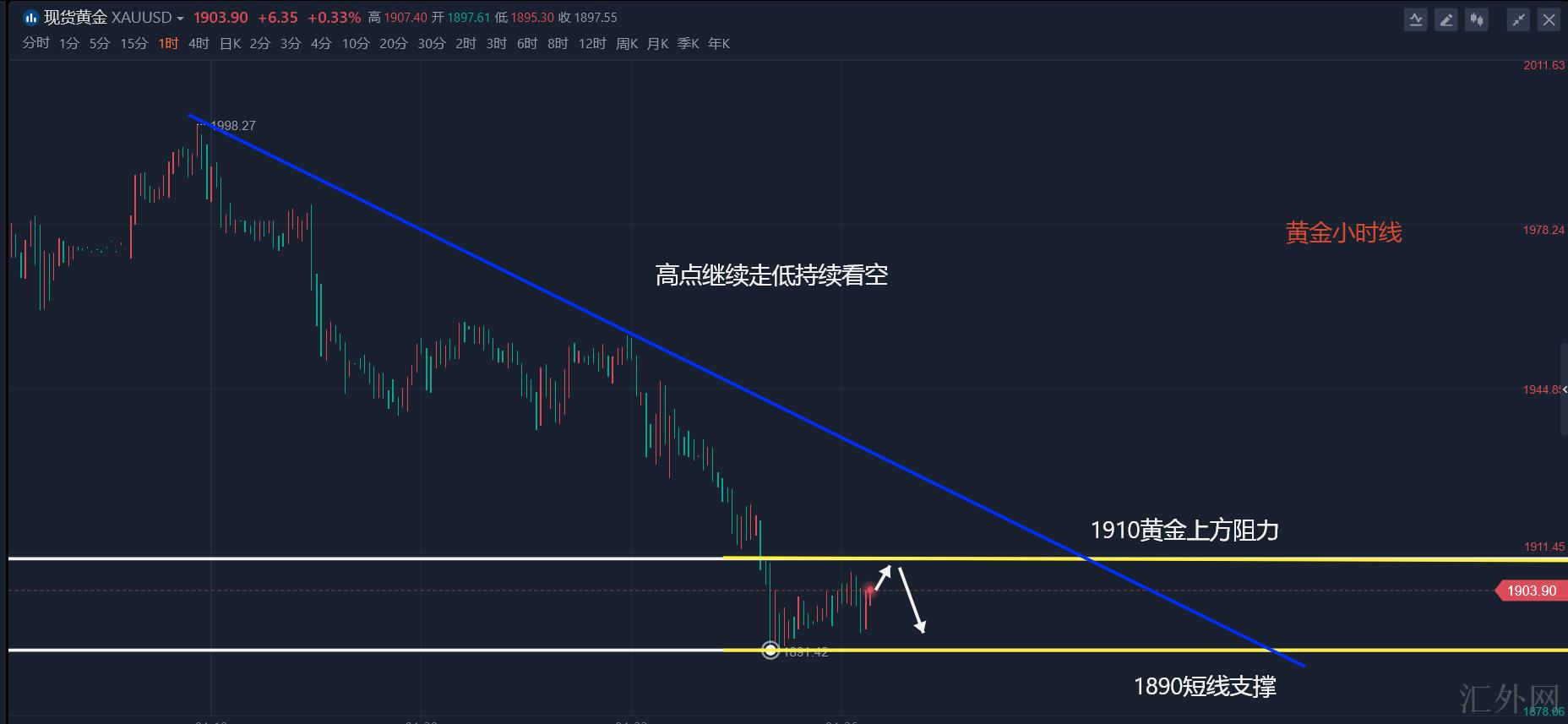 黄金1910-1905左右空,止损1915,计划1900-1890