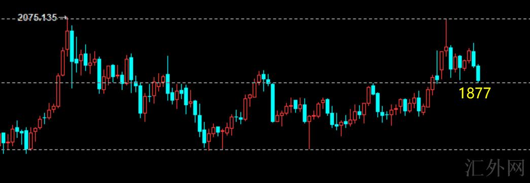 黄金,大趋势接接连分析所述,年初价格自俄乌矛盾避险冲顶到2070,并在2075-2070构筑平行顶部形态抛压到1890;上周拉高1998后又一次抛压到1892,星期二回弹但不影响中期卖方趋势,预计后市在仍会朝下挫破1890;星期三价格顺遂下挫到1881,验证思路;