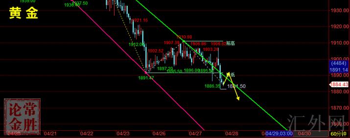 黄金分析:4小时图中,回弹触碰中轨持续下探,卖方趋势已成定局,任何的回弹均为给进场空的好机会,跟上节奏,盈利就变的简单,美盘行情大,顺势吃肉,俄乌当前正在协商,回撤是必然,上方防守可以设在1910左右,MACD柱4小时图中处在0轴以下,均线全部朝下发散,美元再次创下逾两年高峰,卖方趋势量能很足,以下计划看1850,这周内到达,拿好手中的空单,耐心等候利润增大!