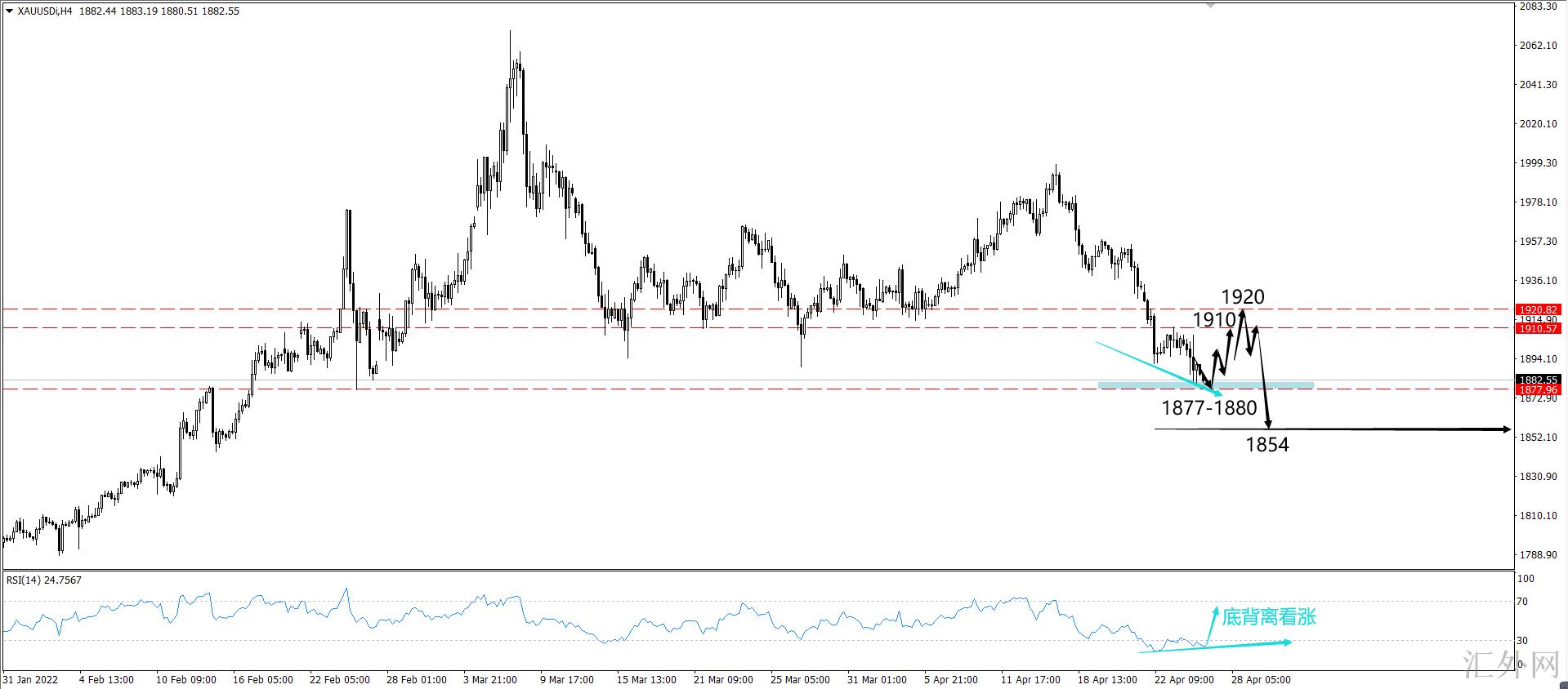 从技术角度来说,4小时级别指标形成了底背离看多,不说能够助推趋势反转,但让黄金走个短时间调动应当没什么困难。而从短线各个周期来说,卖方量都在达到减缩,正好昨天黄金保持下挫修补到了1880美元左右,日间据守1877—1880区间支撑,走个区间调动应当没什么太大的困难。