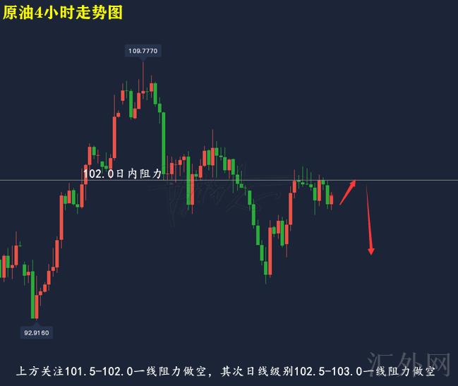 原油技术分析来分析,日K线上,隔日原油遇阻于MA10日移动均线下探,并在跌向日间低点后回涨,报得小阳十字星,日K线上,今日行情开盘持续下探,同期10日移动均线抑制完好,预期恐会做跌;4小时上,隔日原油持于中上缘之间运行,白盘差不多持于盘整,夜里最多跌向中轨位置位置又一次回涨,目前布林带马上开口,MA均线迈出死叉,KDJ随机指标三线并拢朝下,MACD指标红色量能柱开始缩量,快慢线有朝下趋势,综合来说,原油当前短时间仍有下探,日间推荐维持买跌,上方注意101.5-102.0一线压力,其次102.5-103.0日K线大级别压力。