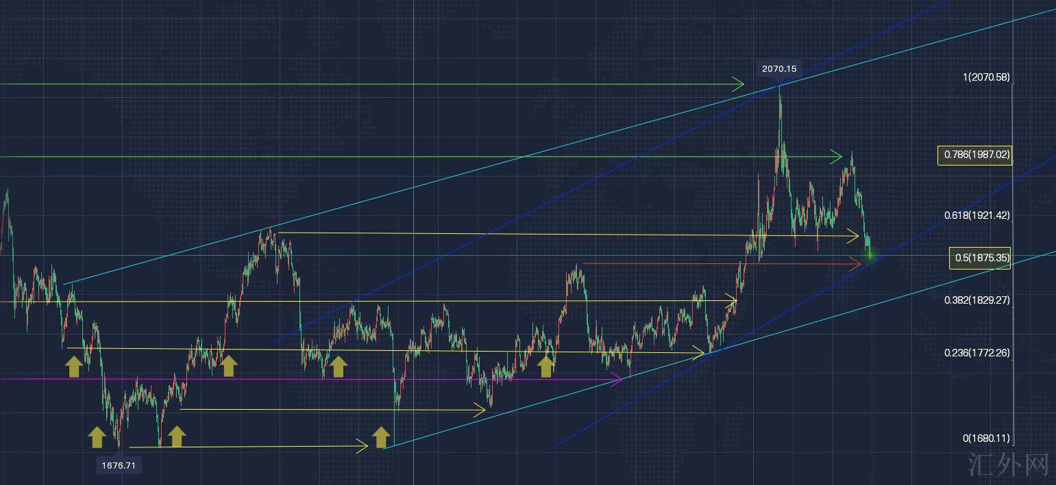 技术上,目前,黄金从1998下挫以来,9个交易日,差不多120美金的降幅,程度来说,已经差不多了,4小时结构上,5浪下挫已经迈出来了,接下去,就需求注意反抽,不要去追空。日间黄金,以下支撑注意1975-80区域,1975此位是1680-2070上升回撤50%的支持点,也是日K线级别前期的顶底转换位,日间黄金,先依托1975-78支撑买涨看反抽,上方短时间压力注意1891,前期的低位及凌晨反抽的高位压力位,强阻力关注昨日内新高点1907,此位是1998下挫以来的趋势线阻力位,黄金价格若能有效击穿此位,短时间有希望保持上涨。若日间黄金价格持续下跌,价格有效跌穿1870,黄金将保持弱势,以下强支撑注意1829-30,此位是1680-2070上涨回撤的0.382支撑点,也是日K线上涨通道的下缘支撑,第一次刷新此位可买涨看反抽!