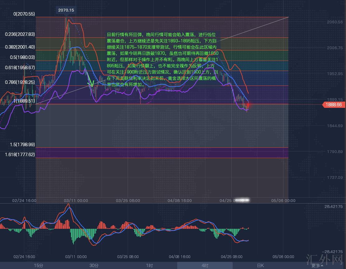 当前行情有所回弹,夜里行情或许会深陷震荡,执行低点震荡磨合,上方持续依旧先注意1893-1895短压,以下则持续注意1875-1870支撑带试探,行情或许会在此区域内震荡,假使今明两日跌穿1870,尽管也可期望再回撤1850左右,但那样对于操作上并没有有好处。而夜里上方着重注意1895短压,假使行情翻上,也不能完全视作为反转,上方可在注意1900左右阻力试探情形,证实回归1900上方,则在下周美联储利率决定来临前,黄金选择大区间震荡的几率也就会有所增长。