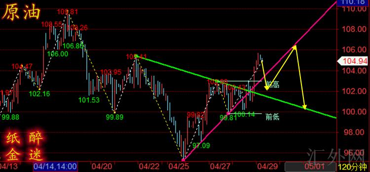 原油昨日下探回涨收盘持平十字K线,最高103.05遇阻,最低回测到99.80。收盘启稳回涨收在101.60上方,日K线收盘持平震荡。结构上处在中性位置拉锯震荡。日K线震荡;均线交织;MACD再次粘合,KDJ轻微死叉,短线行情变数较大,初始留心95.25-105.42区域击穿情形,分别是这周低位支撑和上星期四高位压力,更深一步注意92.93-109.81区域击穿情形,分别是4月11号低位支撑和4月18号高位压力。布林线轨道水平运行,中线行情趋向不明,当前在93.75-113.07区域。