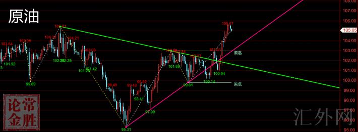 今天原油支撑注意102.5,压力注意106的区域,上周的高位在109的位置
