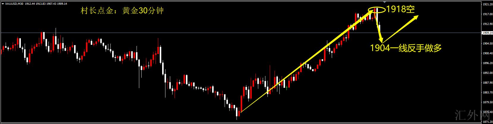 美盘,村长准备在1904一线反手买涨,这里美盘黄金不看暴跌,也不看暴涨,预期就在1900-1920之间震荡了,所以回调到1904一线,准备出击买涨,回弹后再去买跌!