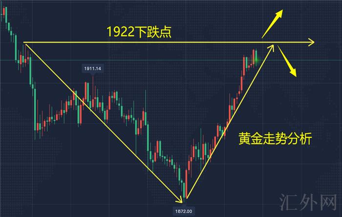 黄金4小时图下探布林道底轨启稳后动员布林道收口,当前立稳中轨,同期也收盘在了1890之上,那么今天短线当作震荡思路,先看到上缘回弹谋求压力,而突破口1890-1888转换成支撑。短线在此位之上先看回弹摸高。上缘压力在1911.同期也是次高位1913左右的压力,压力区域重合。1小时周期于阶段性低位1872收看多吞没形态后,后于1885左右震荡筑底并构筑圆顶形态,看多形态再加上,后市整体看上涨。综合来说,今日黄金短线操作上石万金推荐以回踩买涨为主,回弹买跌为辅,上方短时间注意1926-1931一线压力,以下短时间注意1903-1898一线支撑。