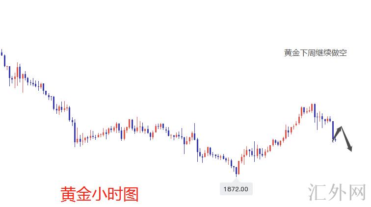 小时图来说,黄金本星期五靠近收盘,大幅下挫,下周初黄金将又一次回弹到1906-1910区间,回弹到这个区间,我们必然是买跌,假使黄金持续下挫,我们还将去布局多单。