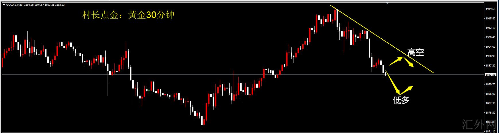 上星期五的行情,村长先是看1918一线回调,空单回调到1907一线全部出局,随后挂了1904多单,本来以为到不了1904,挂了单后面就休息了,没想到挂完一个小时后面,1904多单就进场迅速止盈,后面行情就在1904-1914之间震荡,于后半夜一次杀跌,跌穿1900,诚然这个杀跌时间就很晚了,差不多睡觉了。诚然,这段杀跌依我看来,不是星期五后半夜,还将在今日跌。