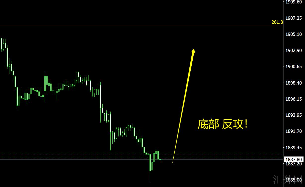 刚刚黄金摸底1884左右,随后短线k线形态上 黄金显现看涨信号