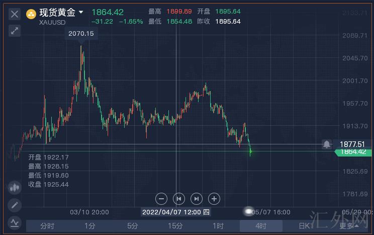 星期一(5月2号),环球黄金价格遇阻下探,因市场广泛预期,美联储将大幅加息,以便限制攀升的通货膨胀,从而提升持有非孳息资产黄金的可能成本。但有经济专家质疑美联储政策合理性,觉得激进收水很难有效打压通货膨胀,黄金后市迅速下挫机会不大。