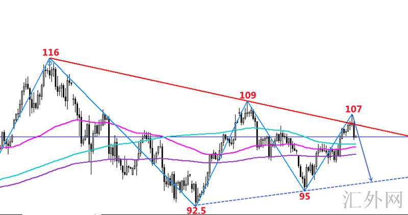 因德加入欧盟其余成员国对俄石油实行禁运的机会性增长,这或许会令本已遇阻的世界原油提供情况更深一步缩紧。原油最近上蹿下跳,没有清晰的行情方向,任然处在三角形整理形态中震荡,其行情和李鸿彬预计依旧完全相符。当前116—109下探趋势维持完好,尽管当前回弹107高点,但是回弹也仍未得到保持,而是冲顶回调收尾。日K线回弹高位在持续下探,表明高点阻力也显著。既然未能损坏下探趋势局势,那么原油也会回撤到95关键点位左右,持续保持三角震荡形态。操作上高估低渣即可,上方107左右空,以下97-98关键点位进入多单。
