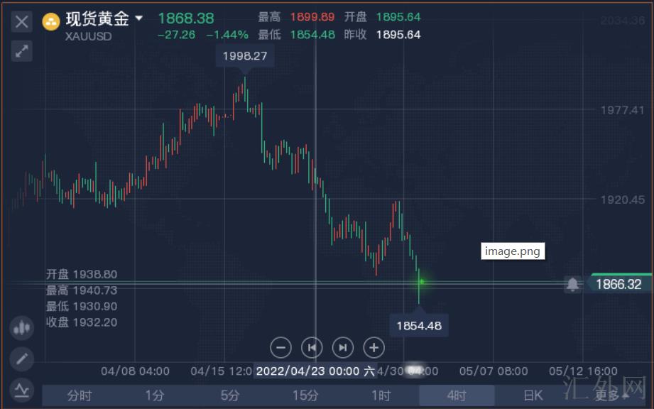 香港时间星期四02:00,美国联邦公开市场委员会(FOMC)将发布利率会议;香港时间星期四02:30,美联储主席鲍威尔将召开货币政策新闻公布会。依据CME美联储观察最新报告表明,5月份加息50个基点的机会性到达为99.6%,一个月以前仅为43.9%。香港时间星期五20:30,美国将发布4月非农就业报告,这是这周最重量级的经济指标。经济专家预期,美国4月非农就业报告恐增加39万,在此之前3月为增长43.1万;美国4月失业率恐打平,保持在3.6%的低点。最近俄乌战争导致了市场避险的高涨,而美元是投资人广被不看空的避险资产。在美联储差不多肯定5月和6月加息,且7月很有机会加息的情形下,非生息资产黄金已失去投资人的青睐。在这周的货币政策决定发布以前,美元行情稍微超前。美联储任何中性或鸽派论调都或许压低美元,推升黄金价格。