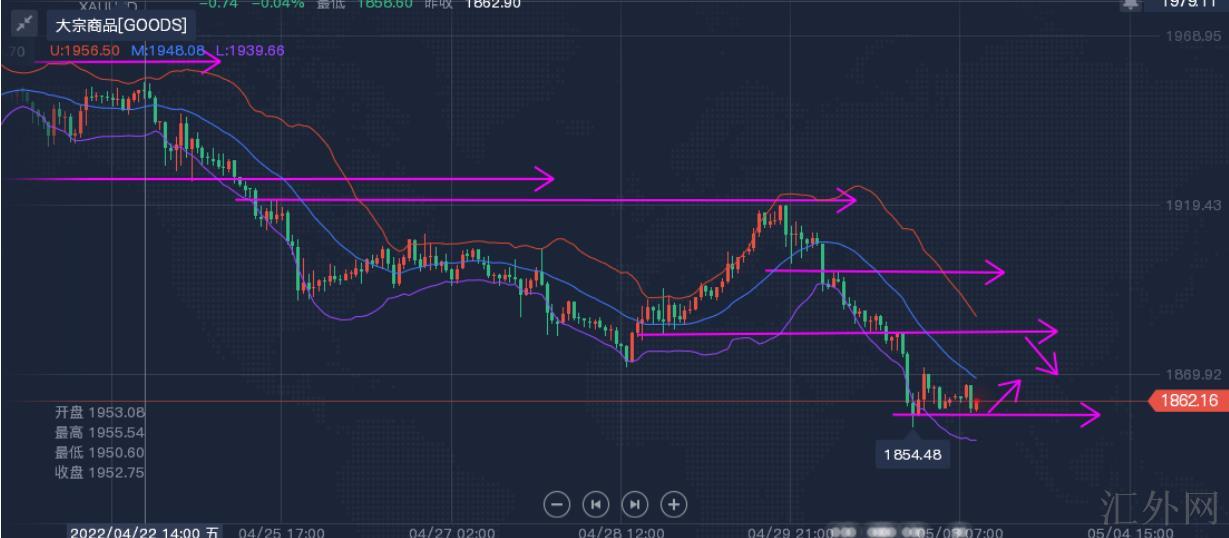 黄金极弱下挫,昨日也是个干着急一天,目睹极弱却不给任何反抽布局空机会,又不敢盲目去追空。从昨日行情来说,昨日亚欧盘阴跌,美盘增速下挫,美盘增速下挫持稳1854.5左右,凌晨反抽1872左右算是终结了昨日极弱行情。