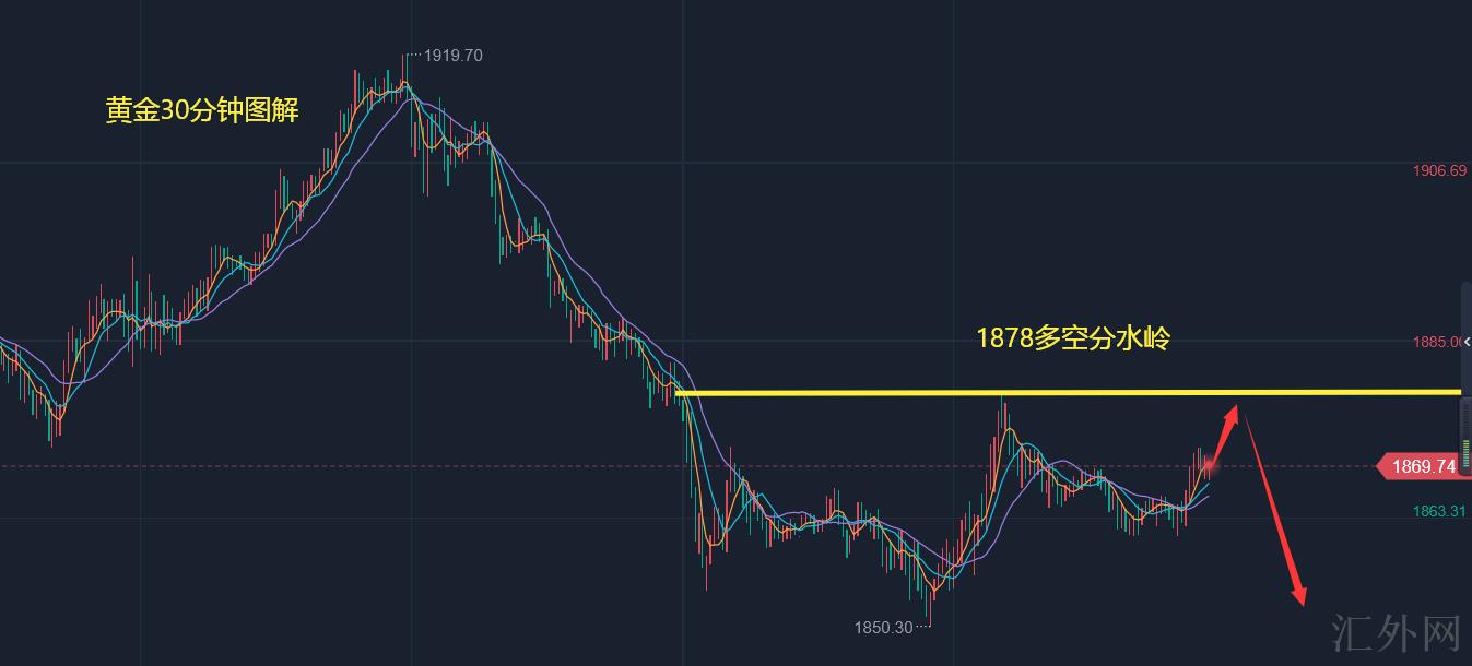 震荡越久,暴发力越强,我们要解决的就是站好队,等候行情又一次下探即可!空,欧盘回弹依托1878持续空!